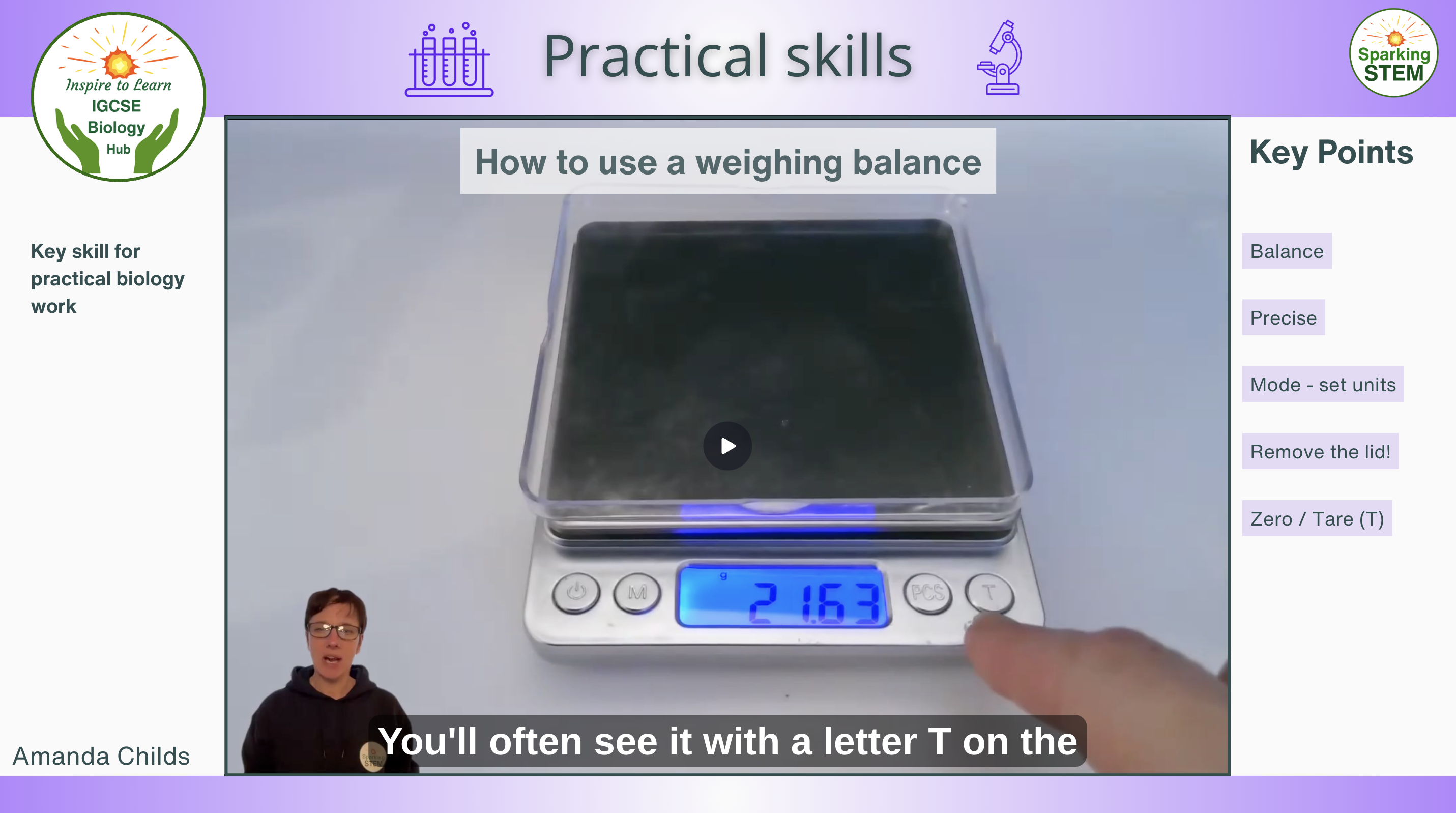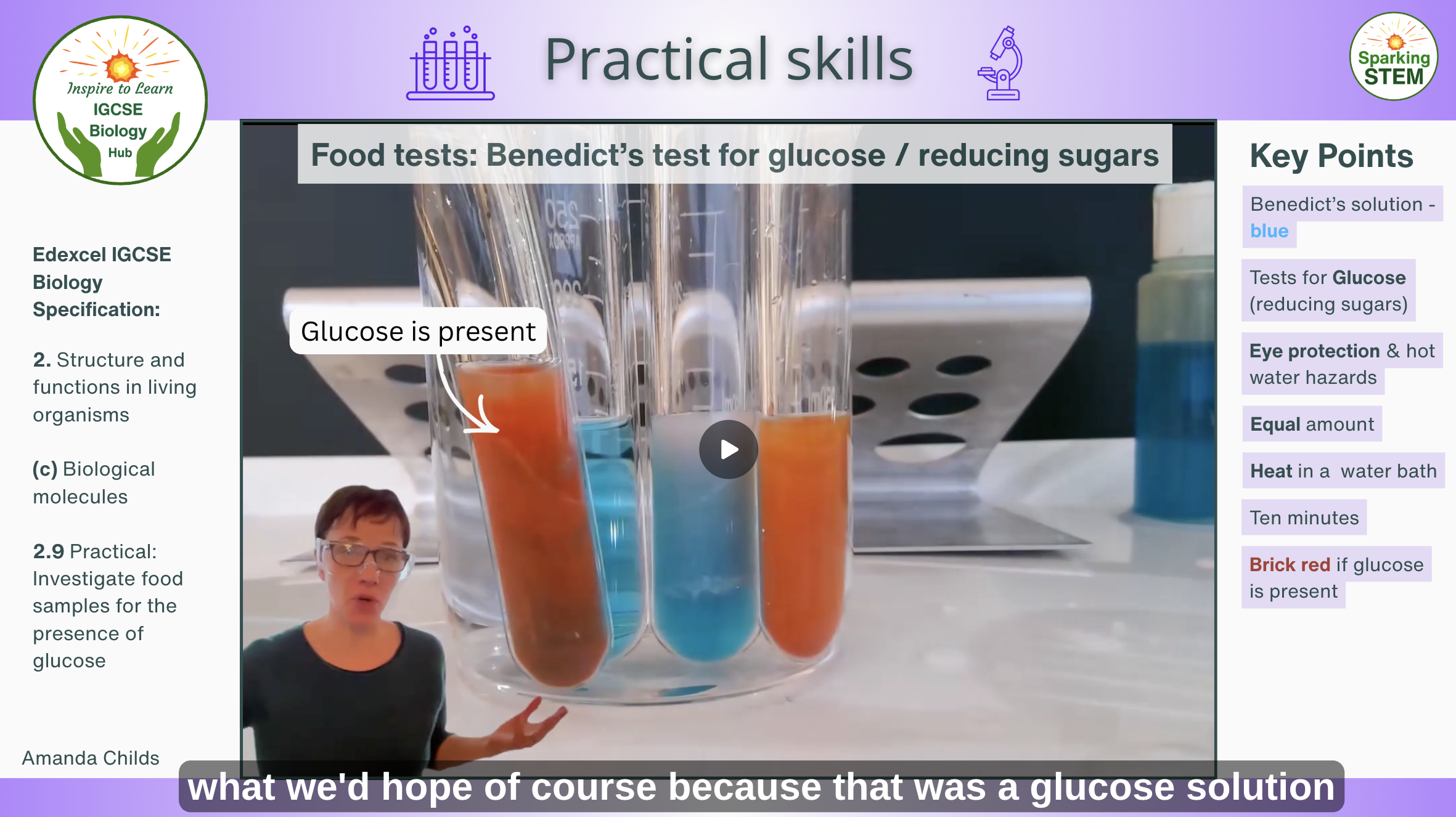 Each week another video is added to the library to support the learning journey through the course content. The collection grows week by week to form a searchable library of over 80 videos when the course completes (Oct 2027). Wherever possible, videos are relevant to the topic taught in that week's tuition session so that they enhance and enrich student's understanding. Videos demonstrate the practicals recommended in the Pearson Edexcel International GCSE for Biology (9-1) specification, as well as a whole lot of other practical demonstrations, experiments and activities that support and enrich the curriculum learning. Step by step, students go through the practicals with the key words, concepts and phrases that get marks in exams clearly listed at the side of the video throughout. But there's more! Biology is about so much more than passing exams, so the Practical Skills videos also include guidance for the technical skills to use equipment properly, so that students feel more confident to go forward in their biology studies after their exams. They'll see how to measure accurately with a measuring cylinder, how to correctly use a balance, how to select equipment according to precision.. and so much more. Key terms and learning points that gain marks in exams are given at the side of each video along with the relevant section of the Edexcel IGCSE Biology specification. The chapters and lessons will grow week by week to form a searchable library. Search the library by the key terms given in the title, so that you can find videos to support your current learning, whenever and wherever you're up to. Watch in your own time, speed up, slow down, pause and reflect. All videos include captions. The length of video is variable depending on topic. Some are just a few minutes, others may be 20 minutes or so.